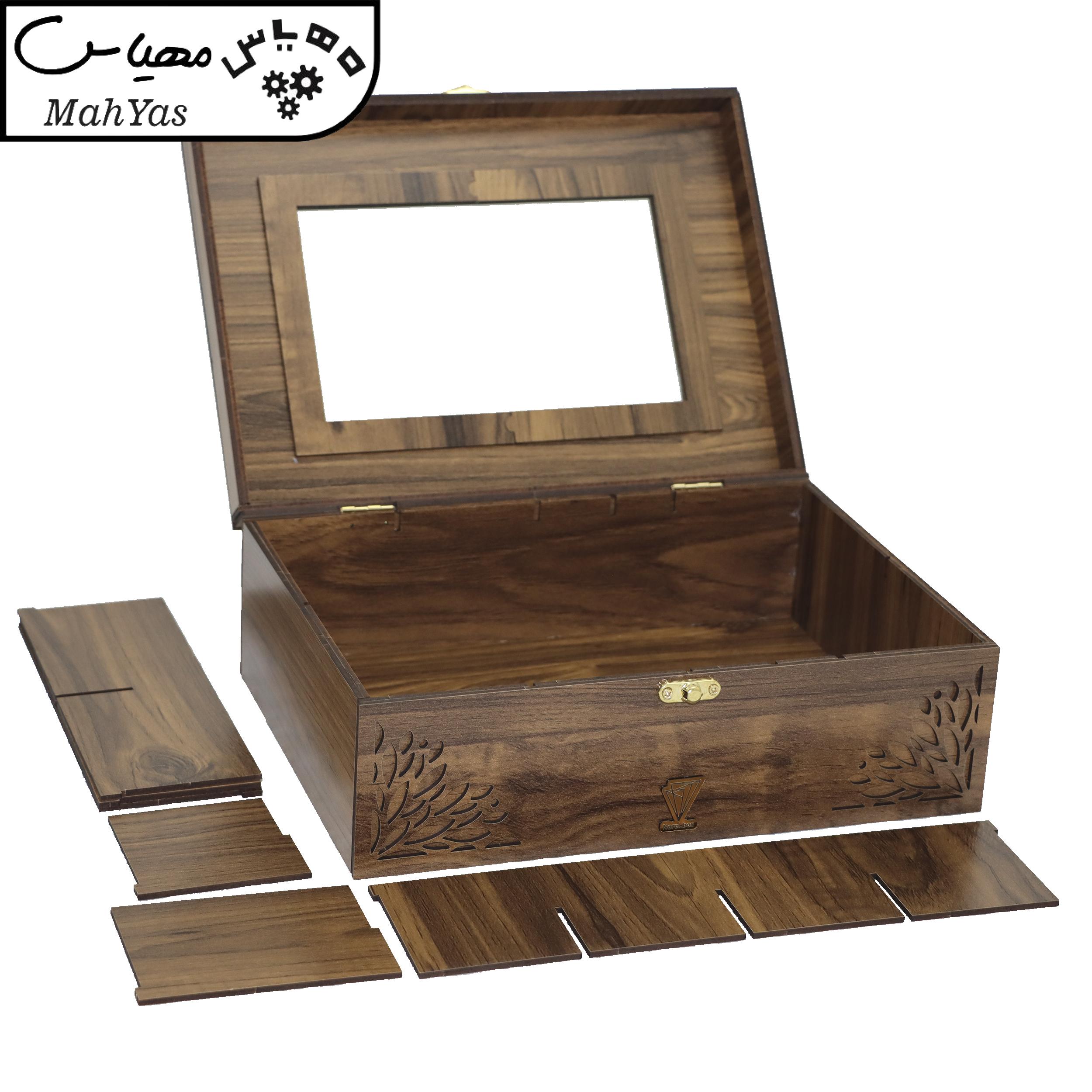 علاوه بر آن با دارا بودن شیشه در قسمت درب، دید به داخل جعبه میسر بوده و از طلق و پلاستیک که به مرور زمان خط و خش می افتد استفاده نشده است.