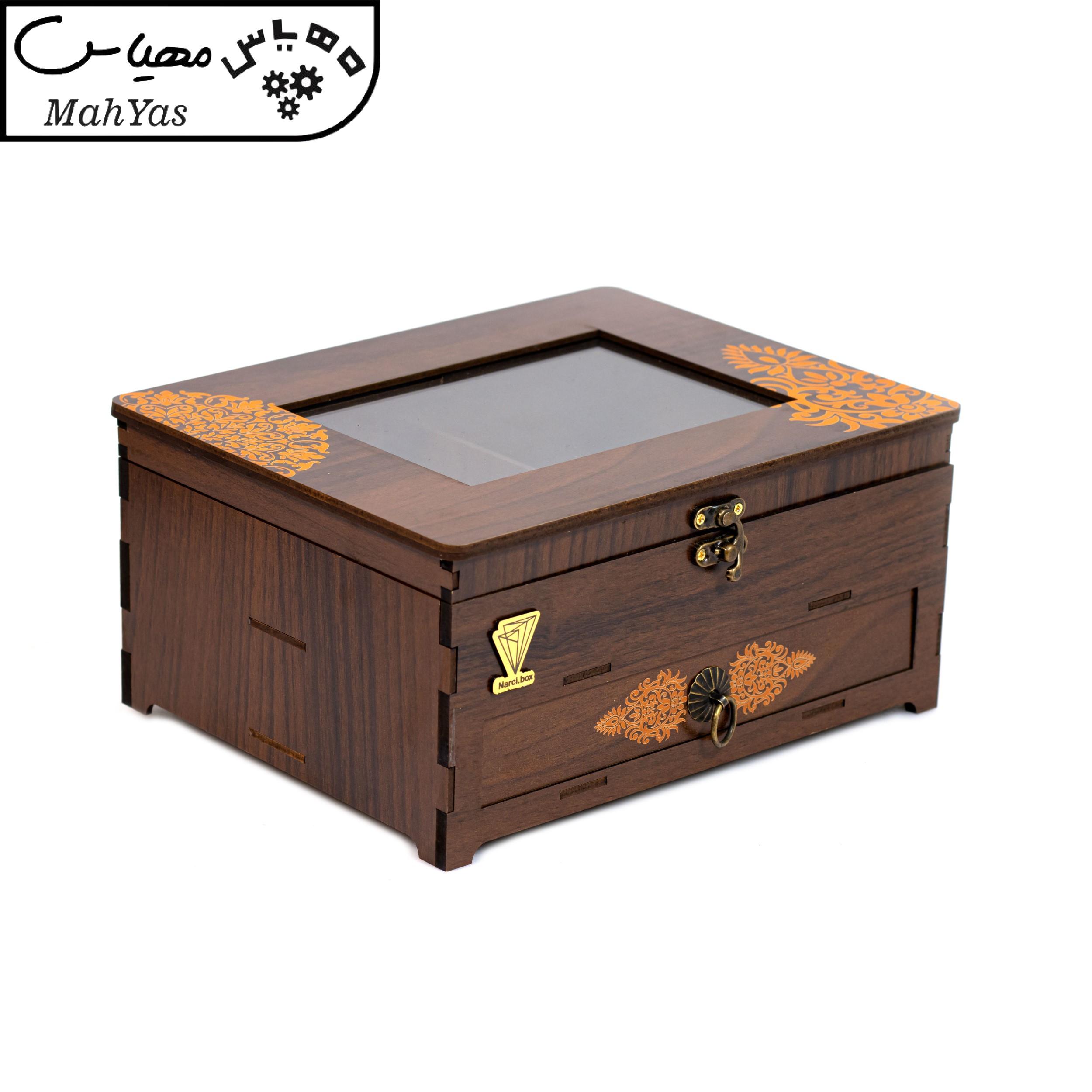 این محصول که با نام الوان، عرضه می شود؛ زینت بخش دکوراسیون منزل ، اداره و دفتر کار شماست که می تواند پذیرایی متفاوتی را از شما دربرابر دیدگان مهمانانتان قرار دهد . این محصول علاوه بر ظاهری جذاب دارای تقسیم بندی های قابل تغییر می باشد که دستان شما را برای چیدمان انواع آجیل ، تنقلات ، دمنوش ها و حتی لوازم خیاطی و… باز می گذارد. ویژگی دیگر این محصول کشوی آن می باشد که علاوه بر کاربردی بودن زیبایی آن را دوچندان کرده است . حکاکی های زیبا بر روی چوب طرحدار از جنس mdf ، جلوه خاصی به این کار بخشیده است.