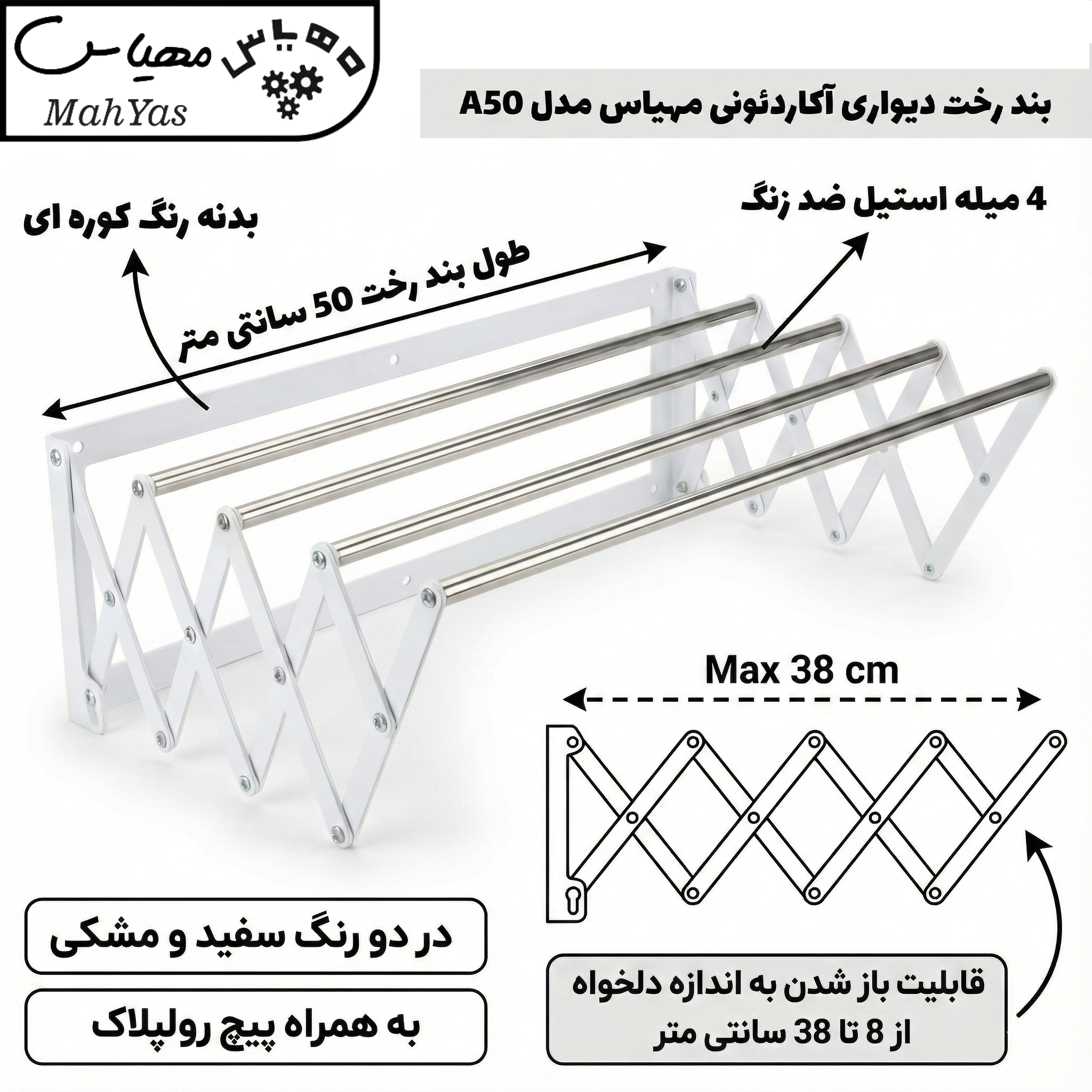 در فروشگاه اینترنتی مهیاس، ما این محصول را با تمرکز بر دو ویژگی «استحکام بالا» و «عدم اشغال فضا» عرضه کردهایم تا خیال شما را از بابت خشک کردن کوهی از لباسها در یک فضای کوچک راحت کنیم.