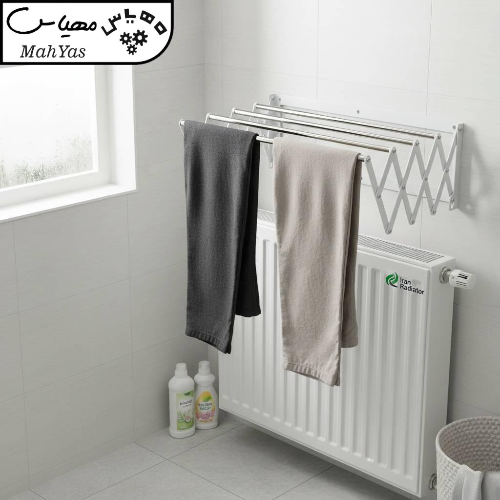 بالای شوفاژ: در زمستان میتوانید آن را بالای رادیاتور نصب کنید تا لباسها با گرمای شوفاژ در کمتر از یک ساعت خشک شوند.